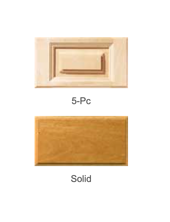 - The 5-piece front is shown in Sapele Ribbon Grain Mahogany with a clear finish.