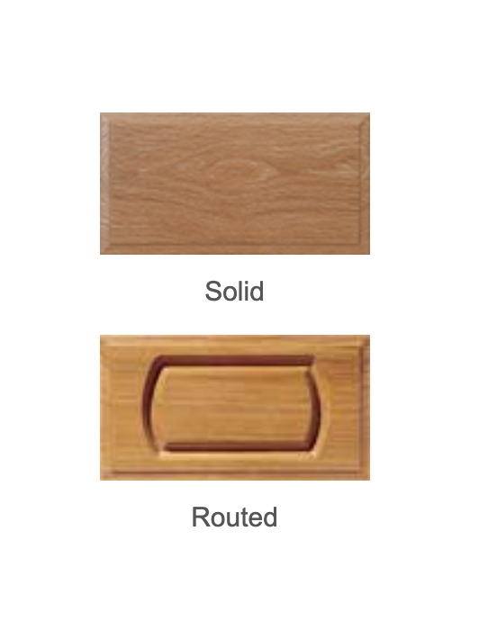 Patriot 3/4" Drawer Front is pictured here in White Oak Select with a Clear Finish. This easy-to-install panel requires removing the existing drawer front before it can be securely fastened into the drawer box.
